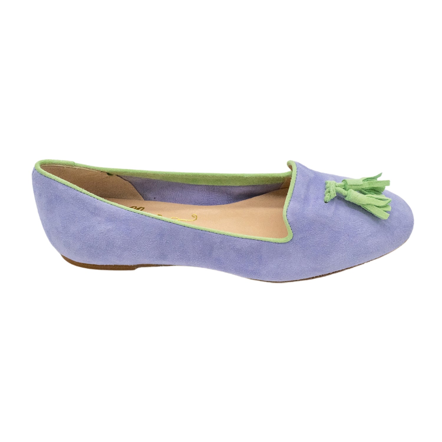 Obermaterial: 100% fliederfarbenes Wildleder mit hellgrünem Tassel
