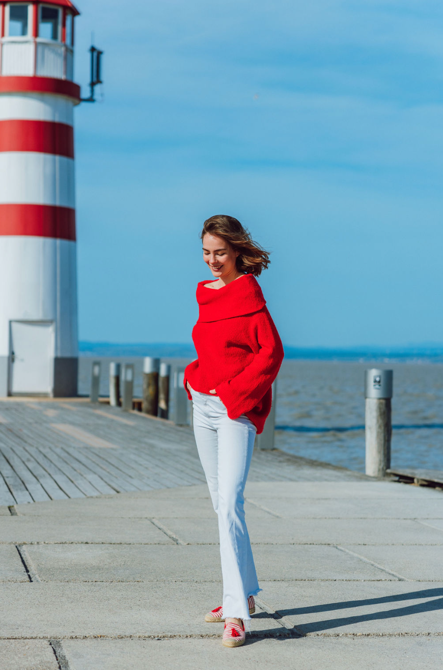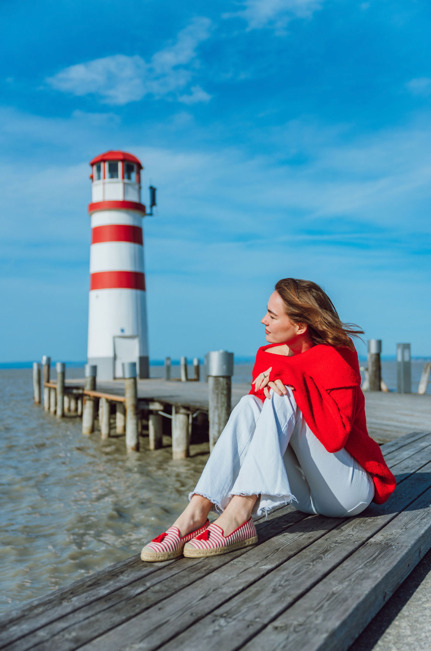 Upper material: red and white striped linen fabric with red suede tassel