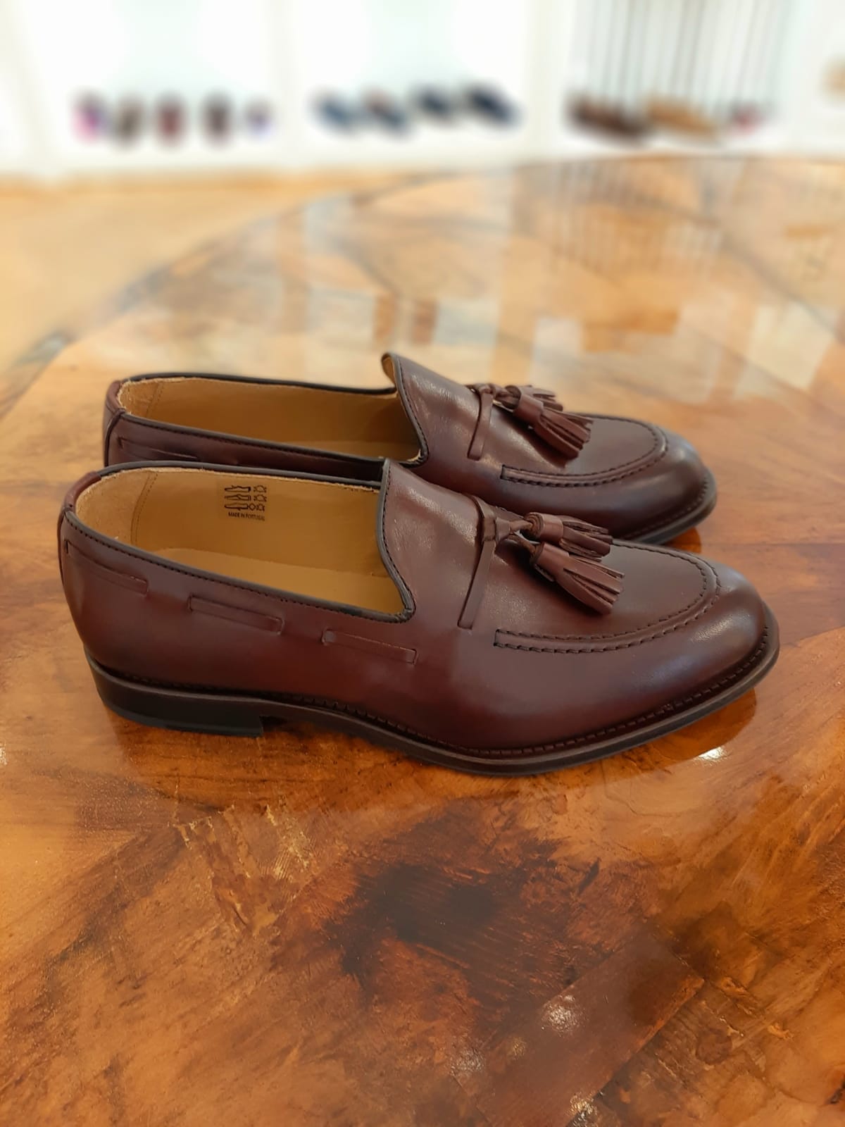 Our wine-red tassel loafers are made in a small factory according to our specifications and have an excellent fit. The shoes have a chic yet timeless silhouette, which means that the shoe can be perfectly combined with a business suit or casual wear.