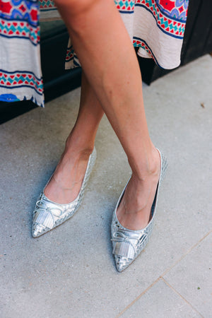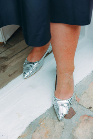 Our tapered Bella's Fringe Pointy, with its fine leather fringes and braided details, combines timeless elegance with modern charm. The subtle tassel detail underscores the sophisticated look, while the sleek silhouette makes the shoe the perfect companion for both the office and leisure time. High-quality materials also ensure excellent comfort.