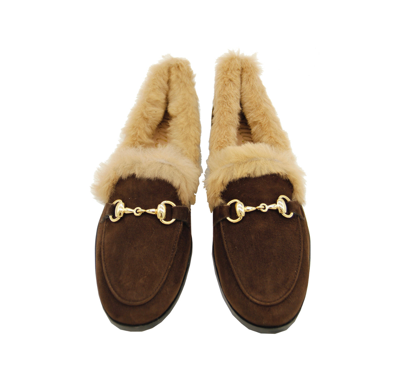 Upper material: 100% dark brown suede lined with real rabbit fur