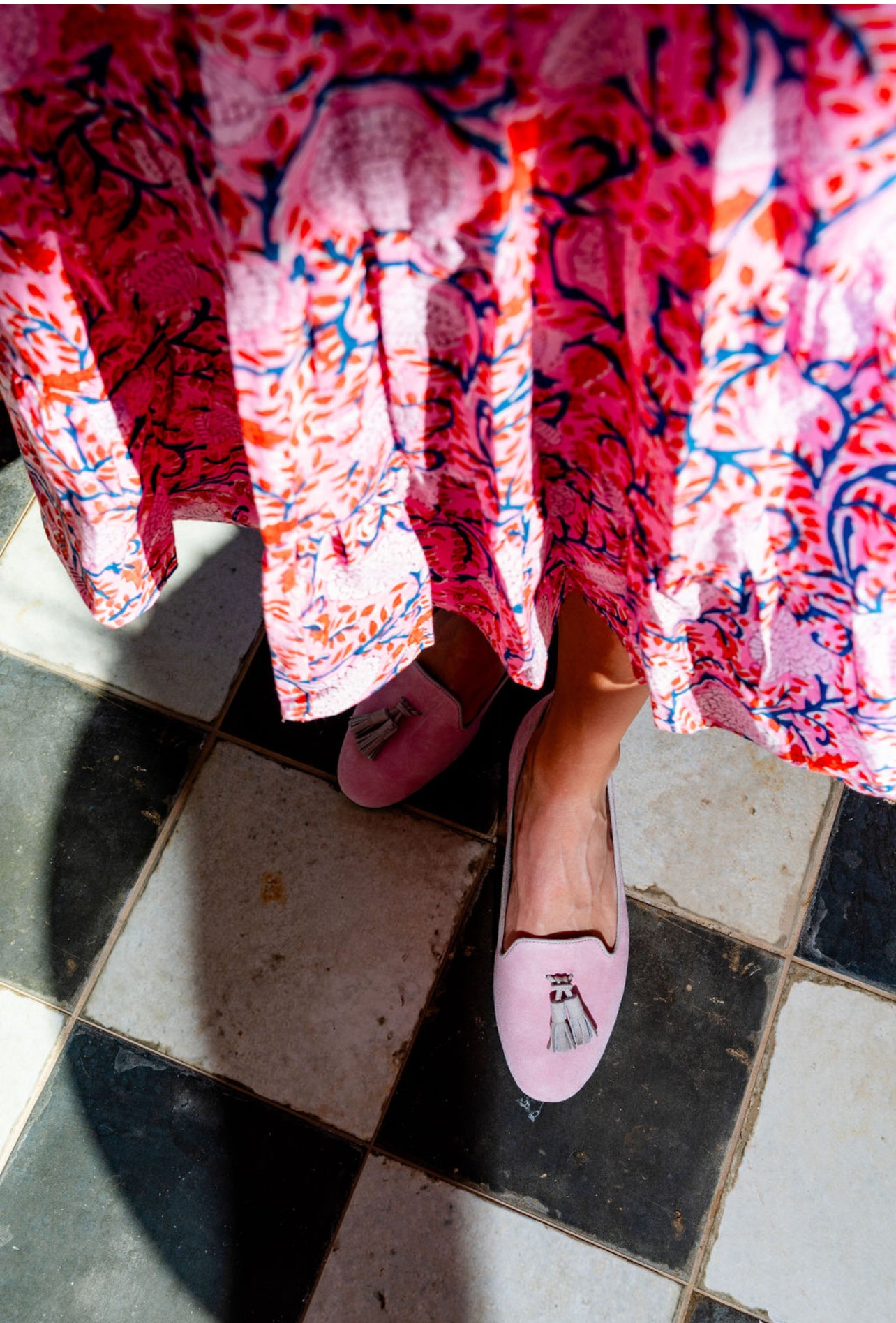 Upper: light pink suede with grey tassel