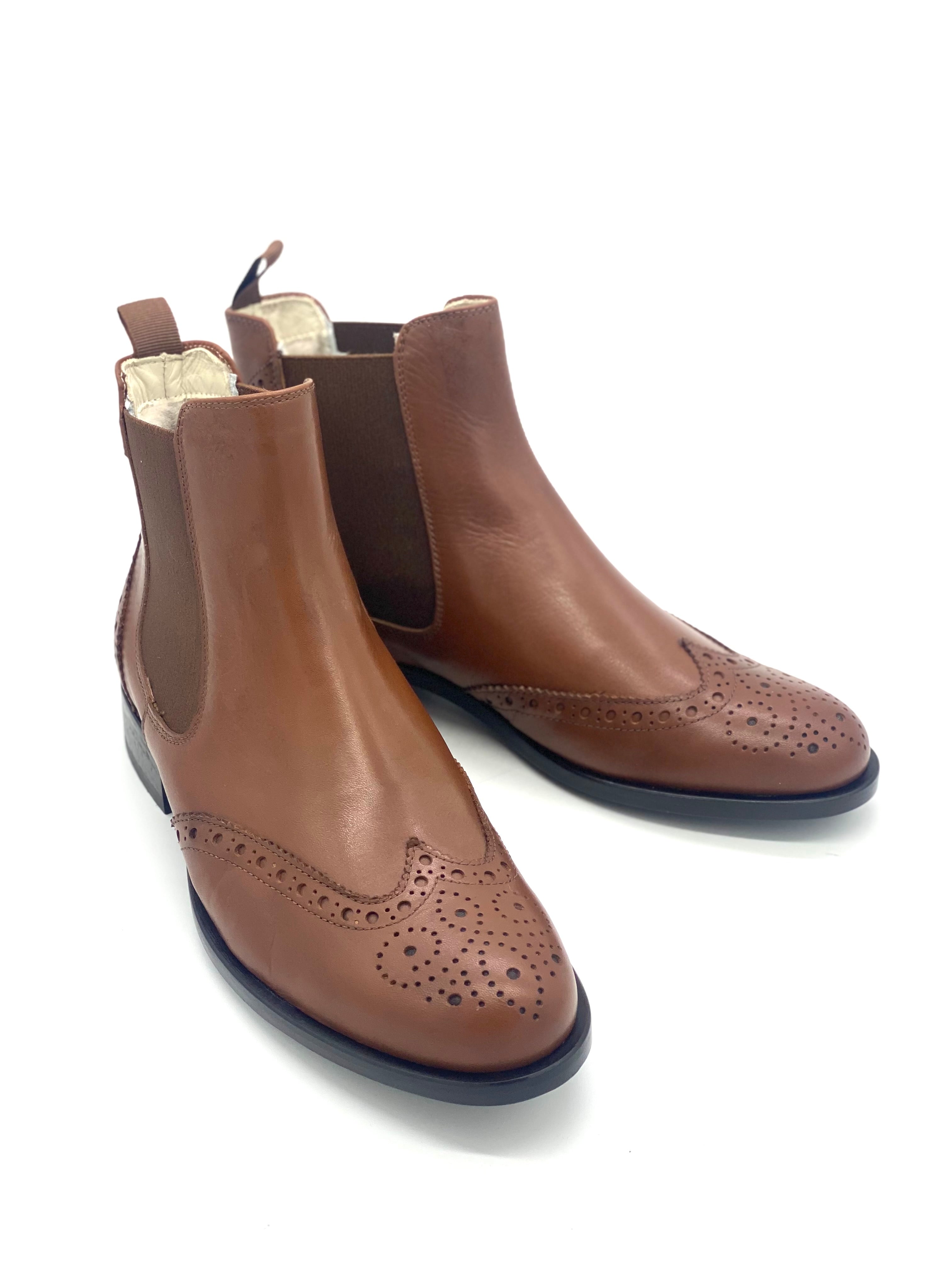 Cognac brown smooth leather Chelsea boot ankle boots with Budapest pattern and lambskin lining