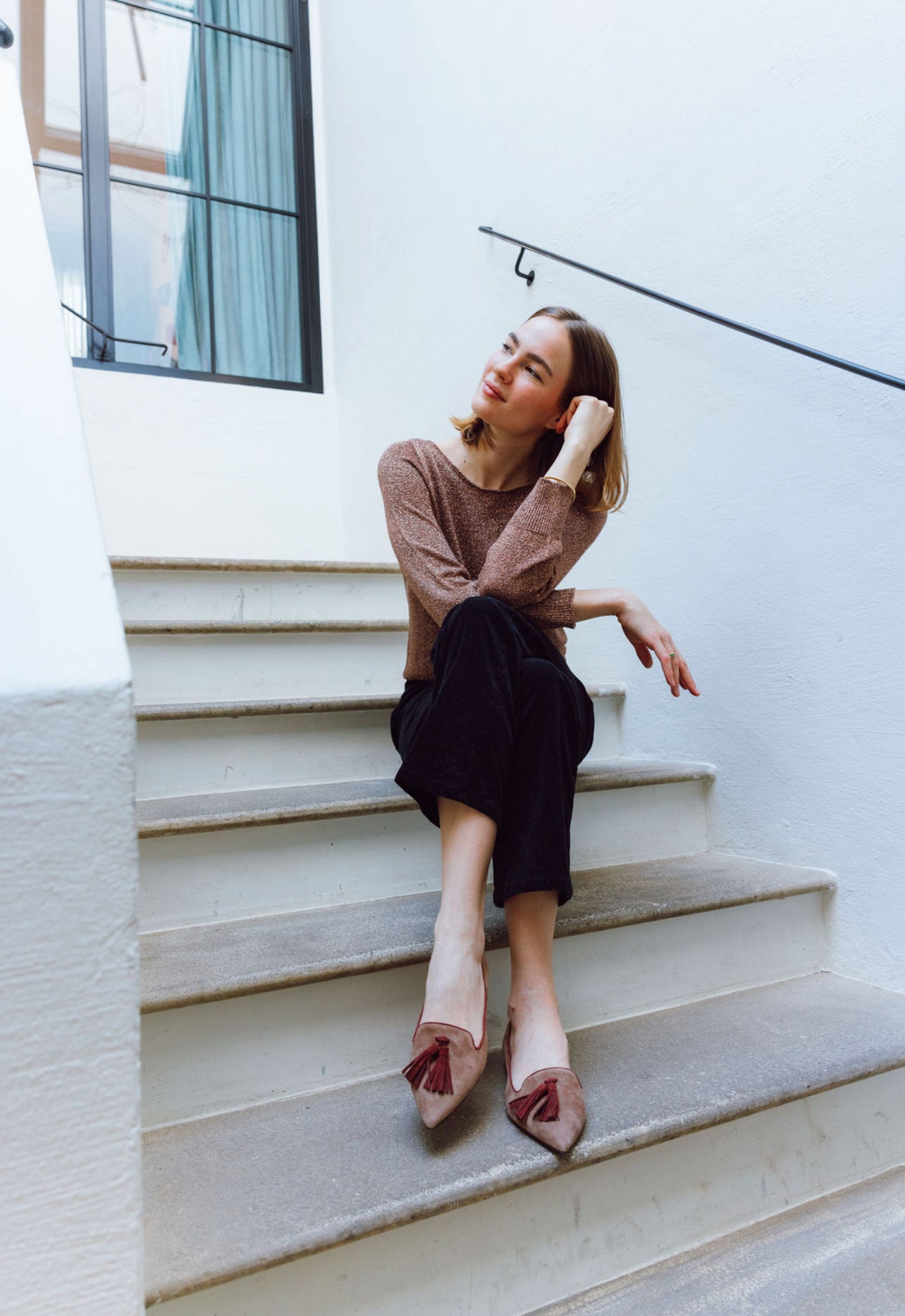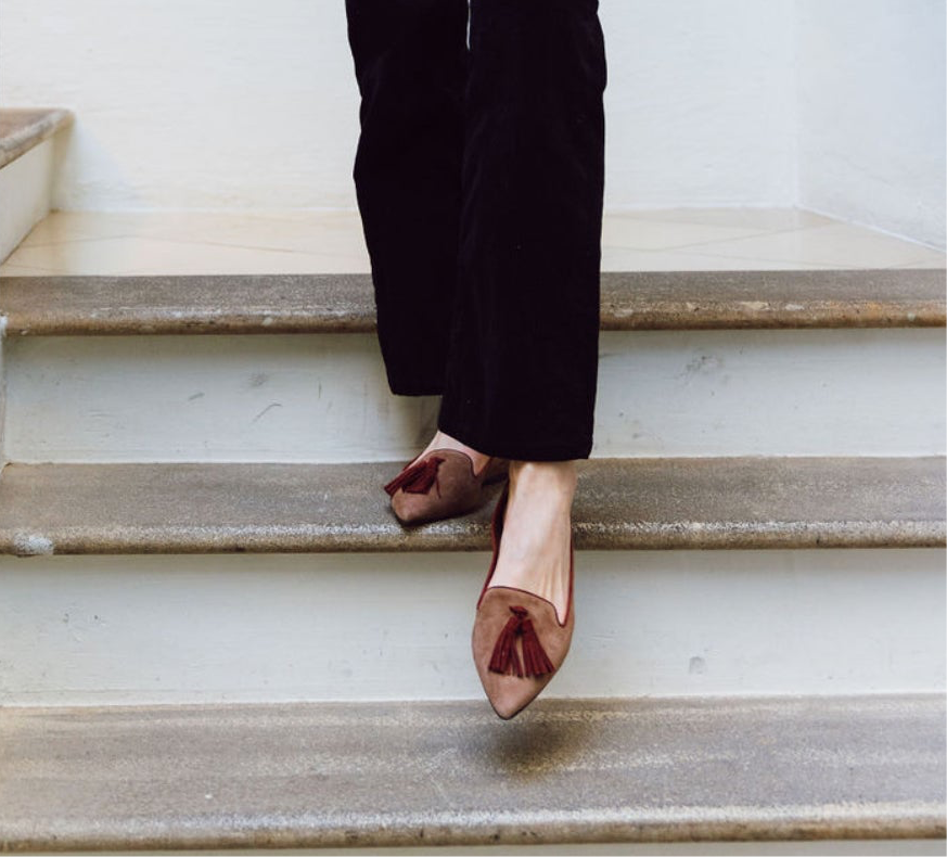 Obermaterial: taupefarbenes Wildleder mit rotbraunem Tassel