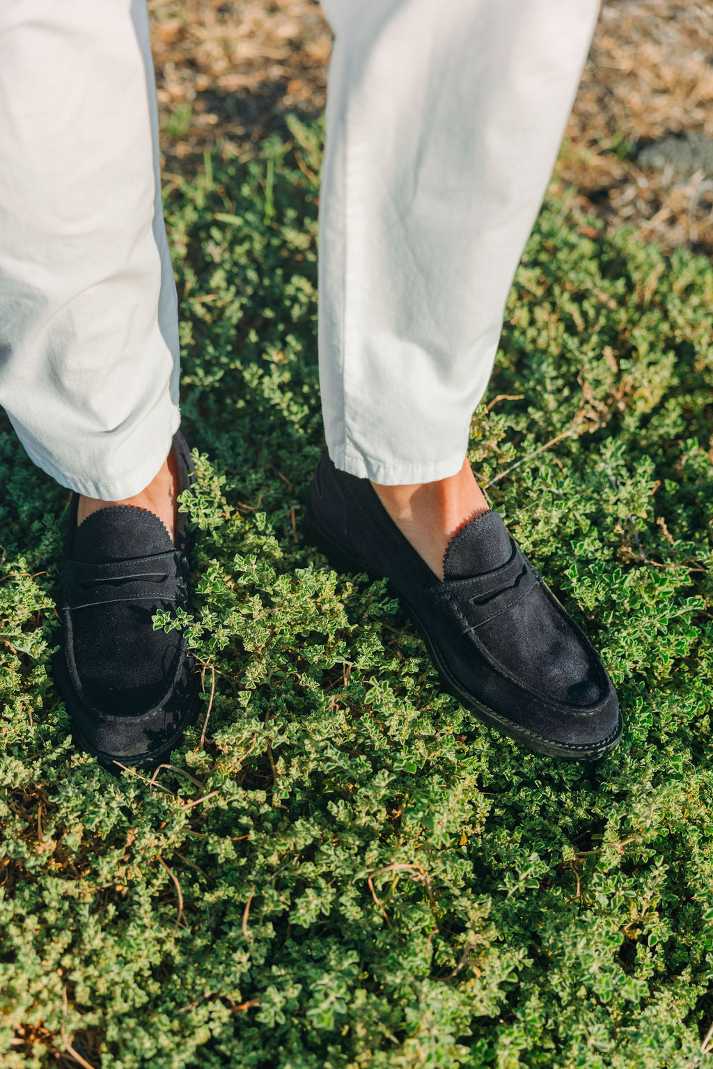 Unsere dunkelblauen Loafer werden in einer kleinen italienischen Manufaktur nach unseren Vorgaben gefertigt und verfügen über eine ausgezeichnete Passform. Die Schuhe weisen eine schicke und gleichzeitig zeitlose Silhouette auf, die es ermöglicht, dass der Schuh perfekt zum Business-Anzug aber auch zur Freizeitkleidung kombiniert werden kann.