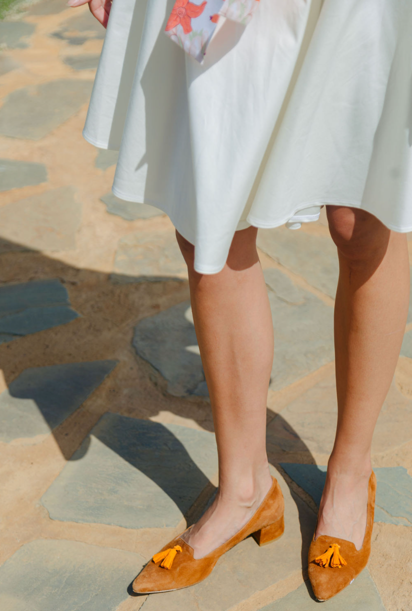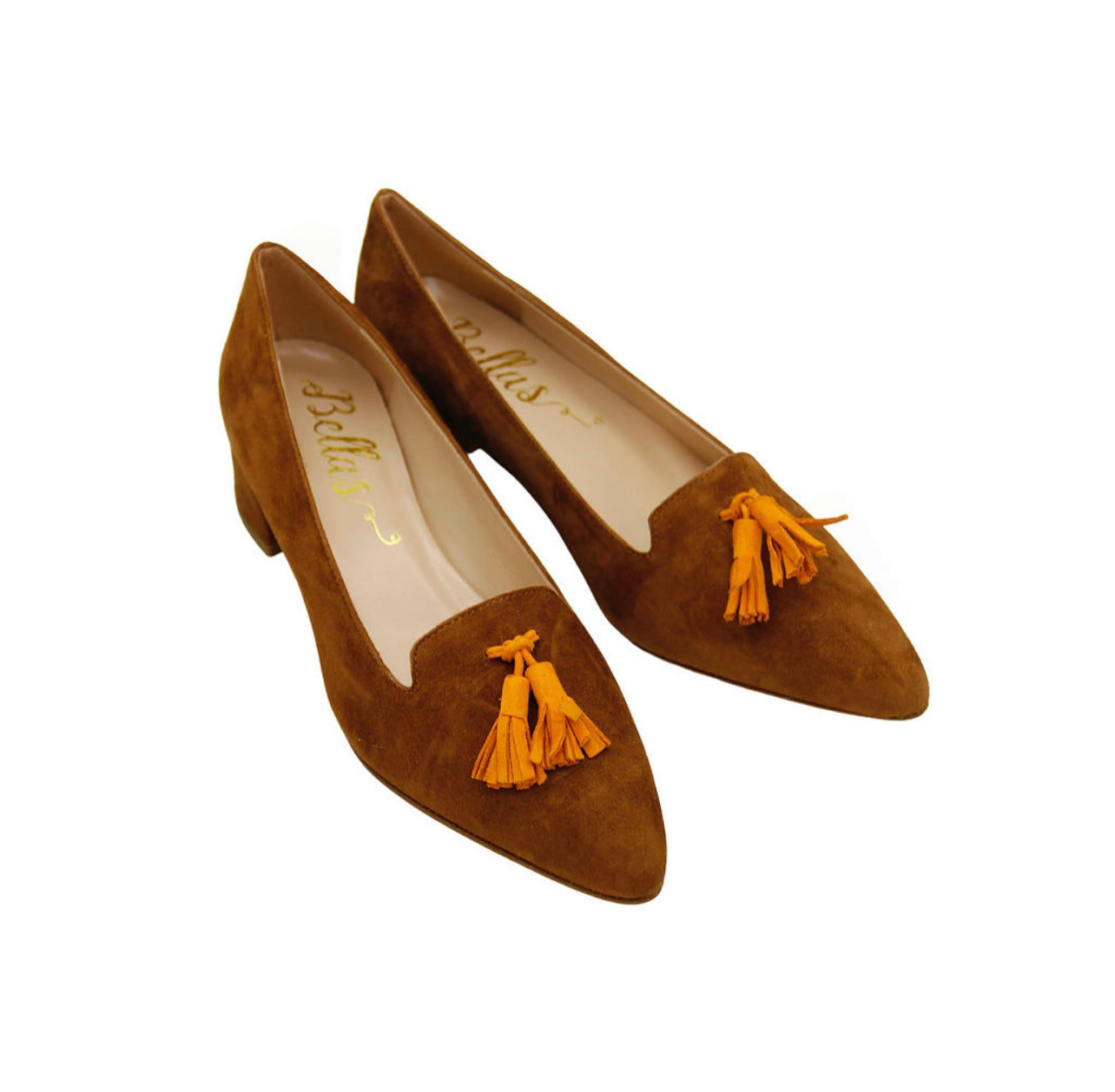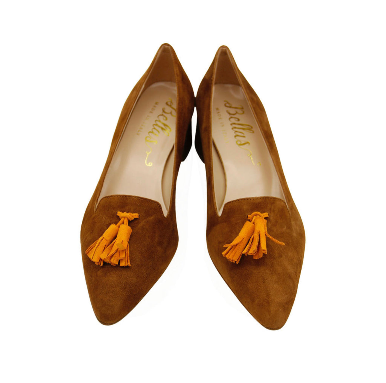 Obermaterial: 100% Wildleder in cognacfarben mit orangem Tassel