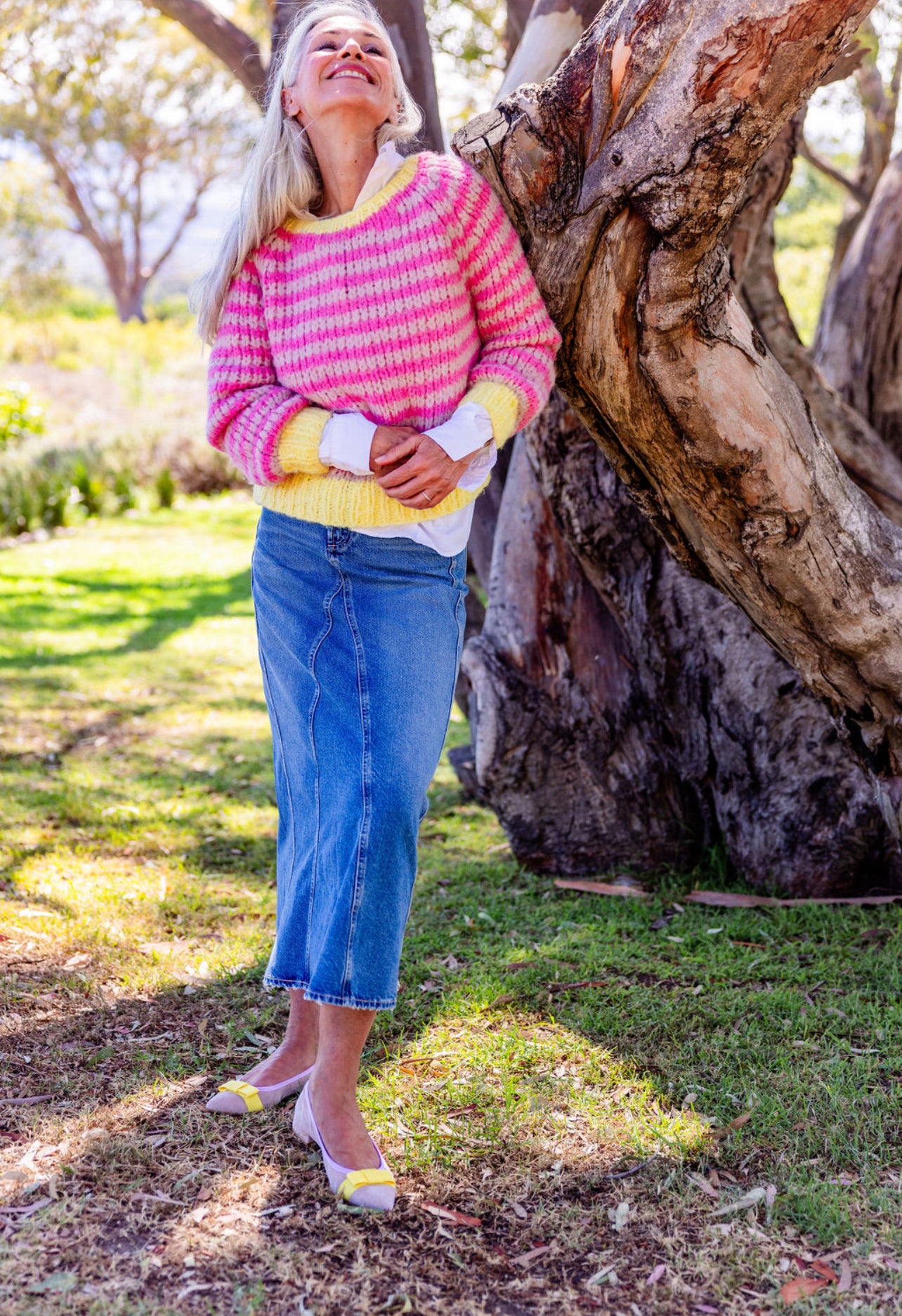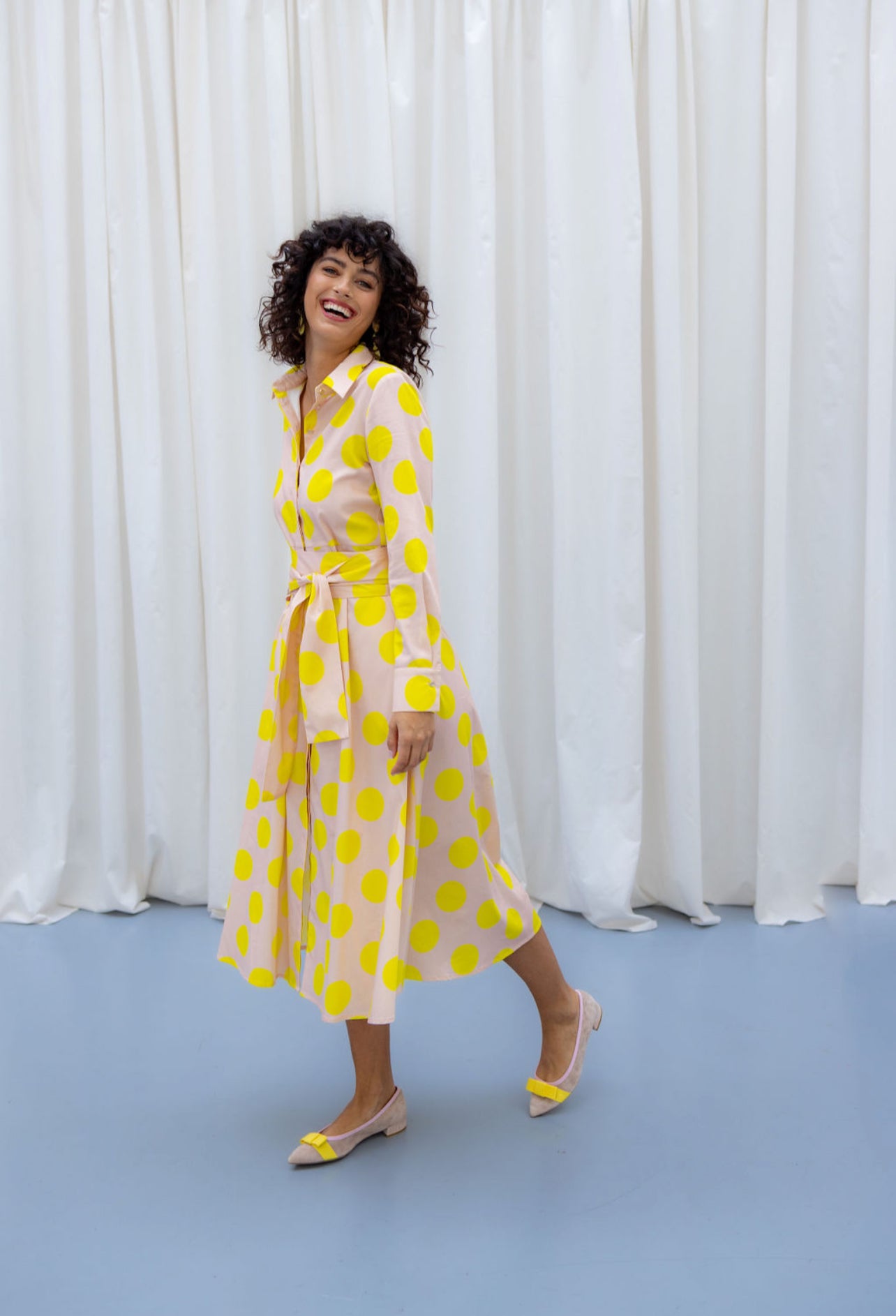 Obermaterial: hellbeiger Wildleder Pumps mit 2cm Absatz mit hellrosa Ripsband-Einfassung und gelber Rips-Schleife