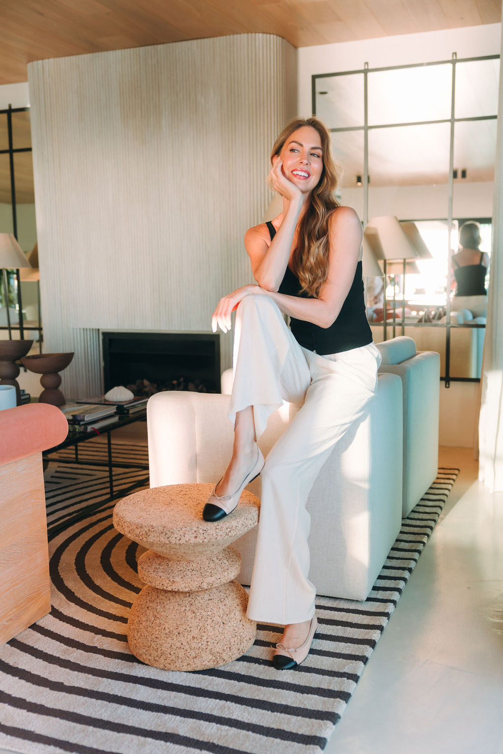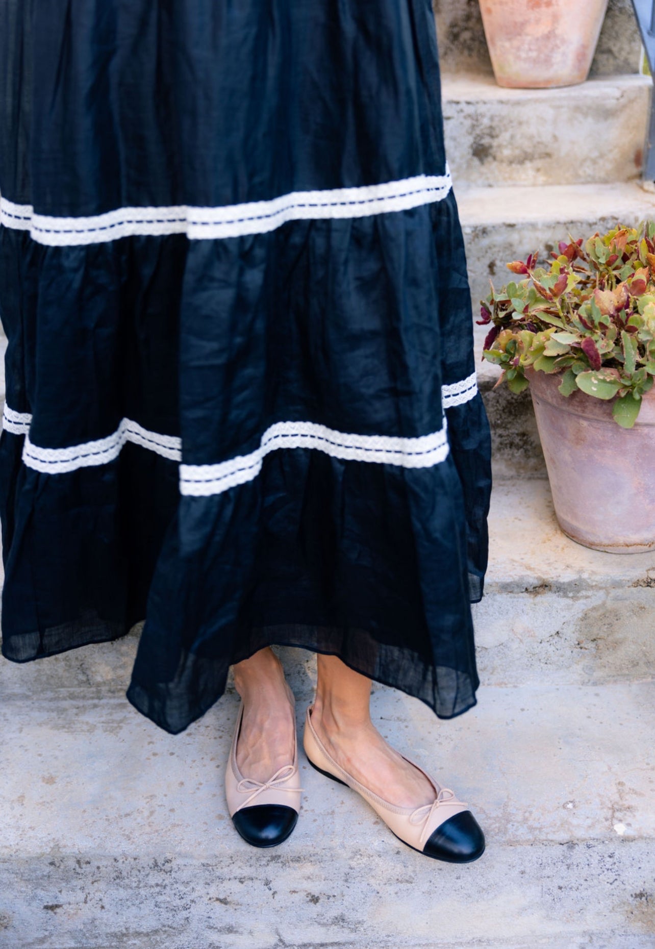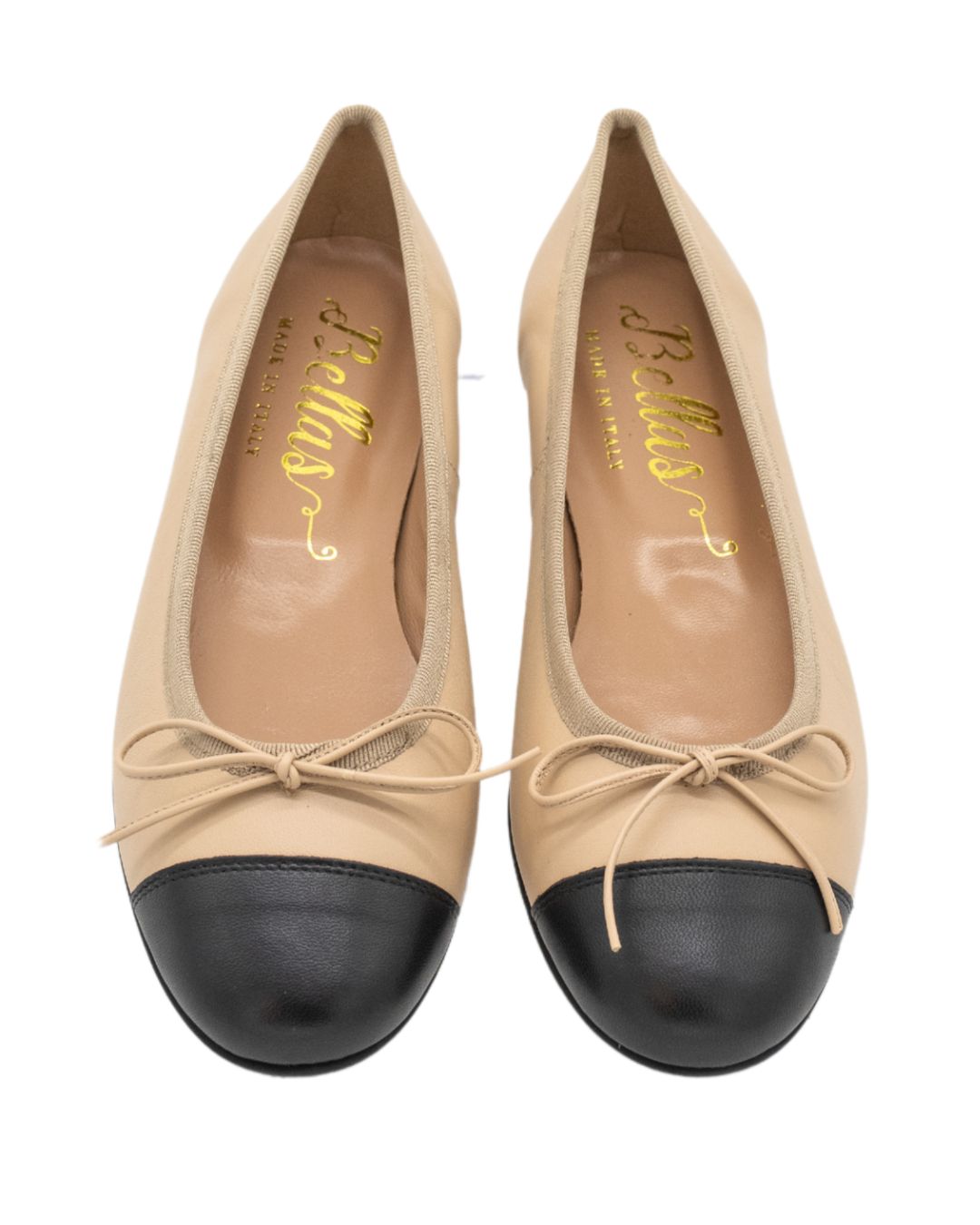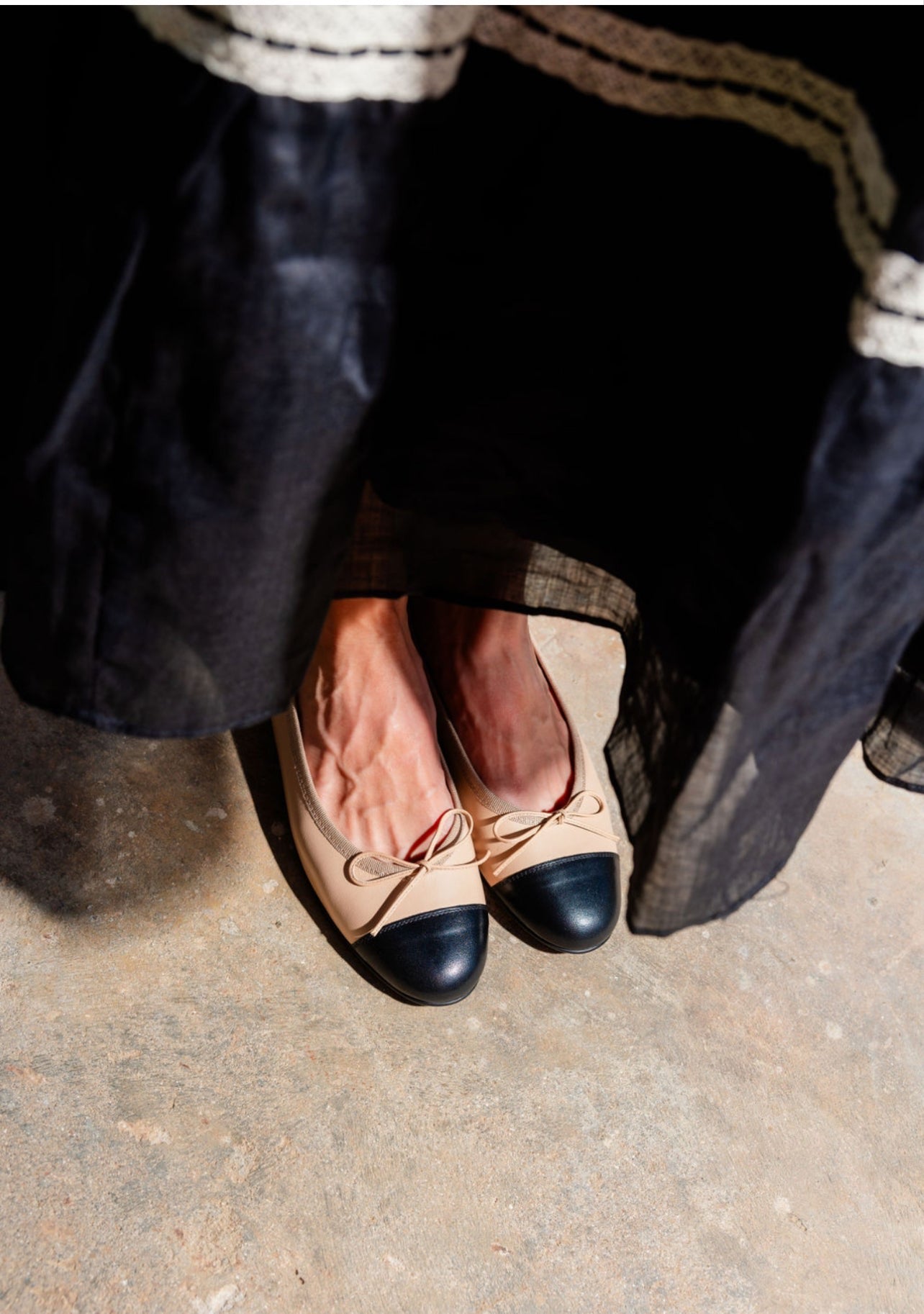 Two-Tone Ballerina in Nudefarben mit schwarzer Kontrastkappe