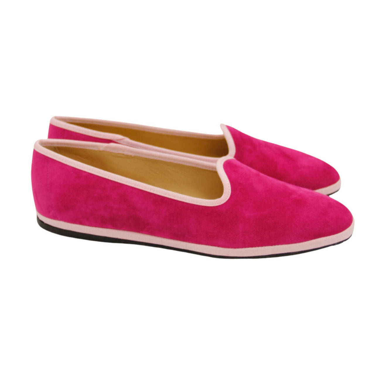 Obermaterial: 100% Pinkes Wildleder mit Ripsband Einfassung