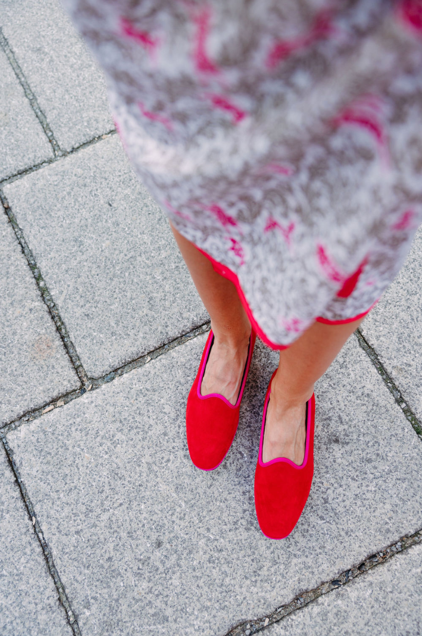 Obermaterial: 100% Wildleder in rot mit pinker Ripsbandeinfassung