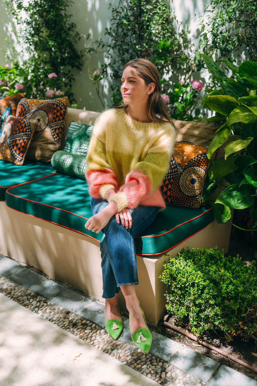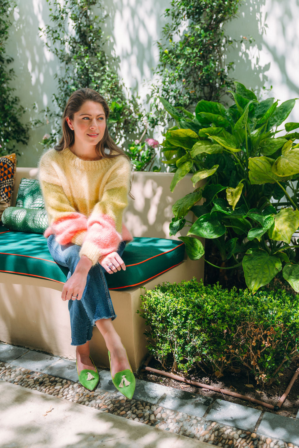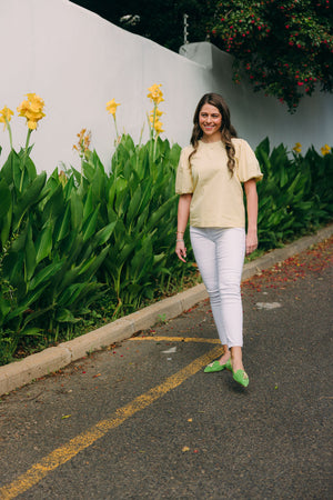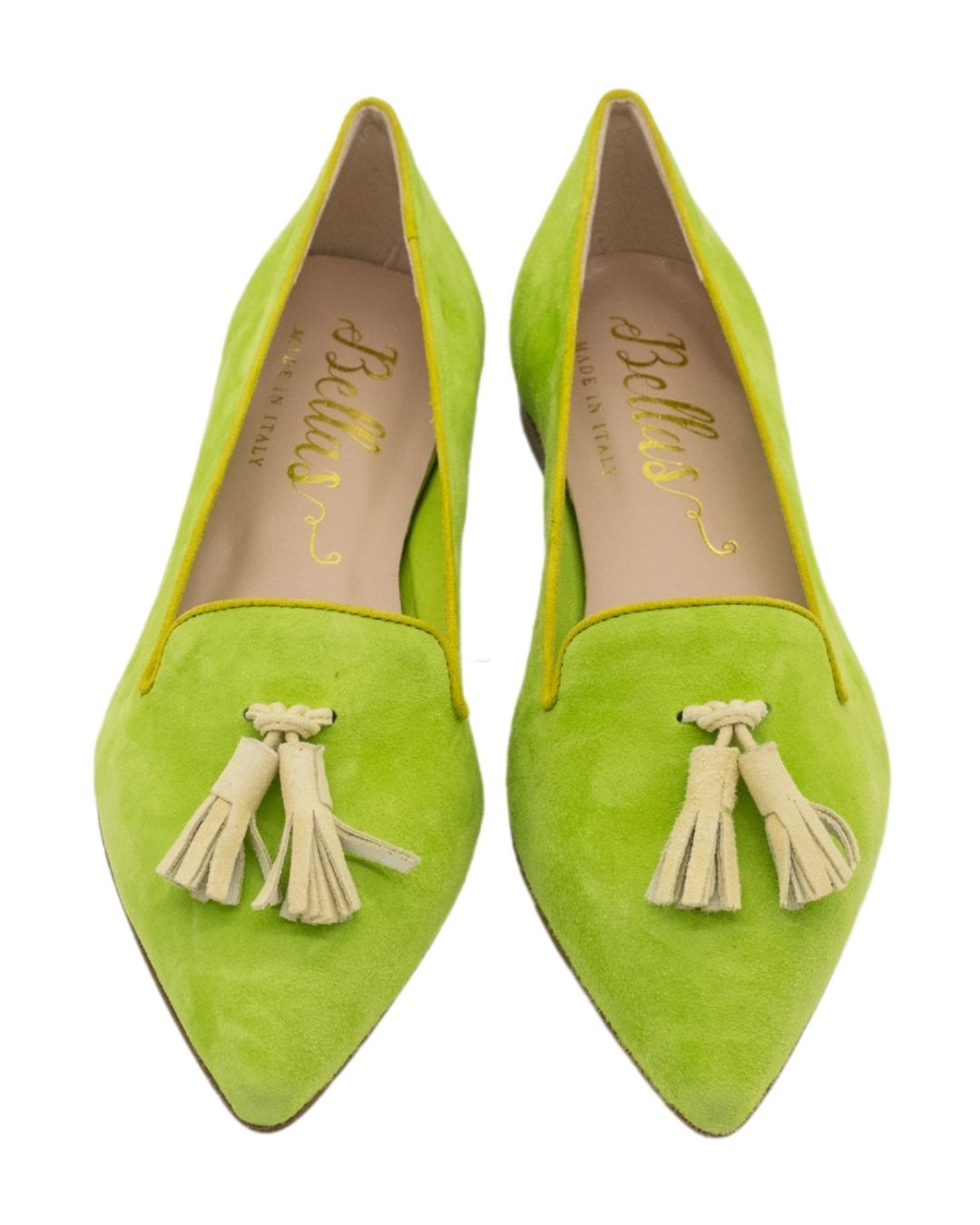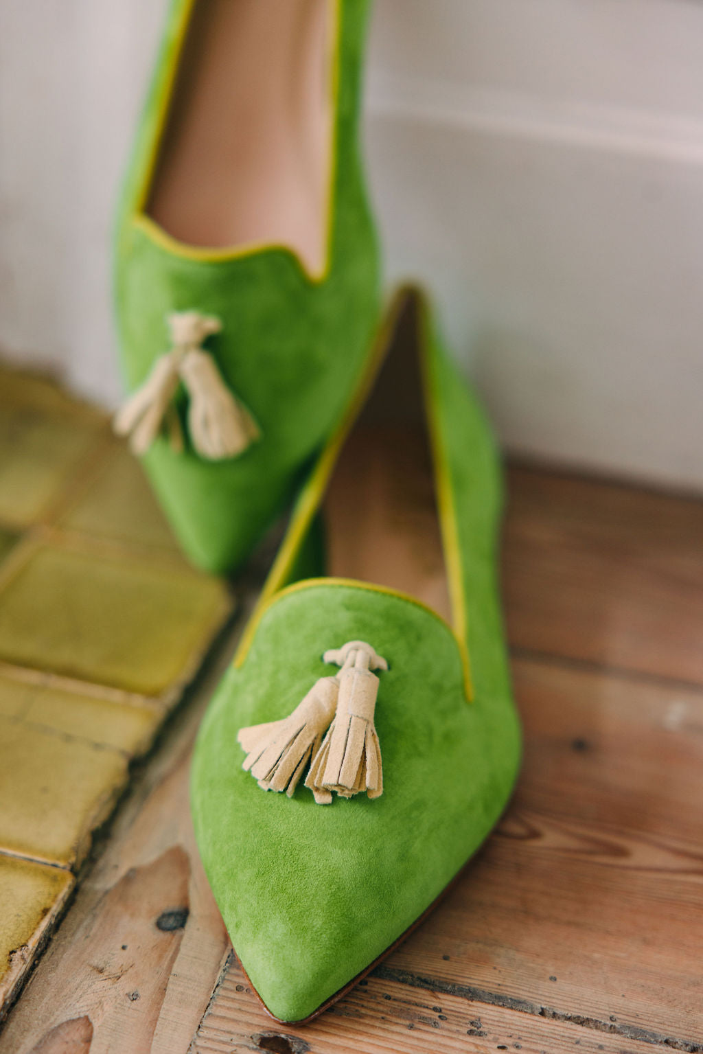 Obermaterial: Hellgrünes Leder mit Tassel in hellgelb und hellgrüner Einfassung