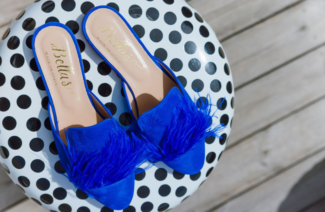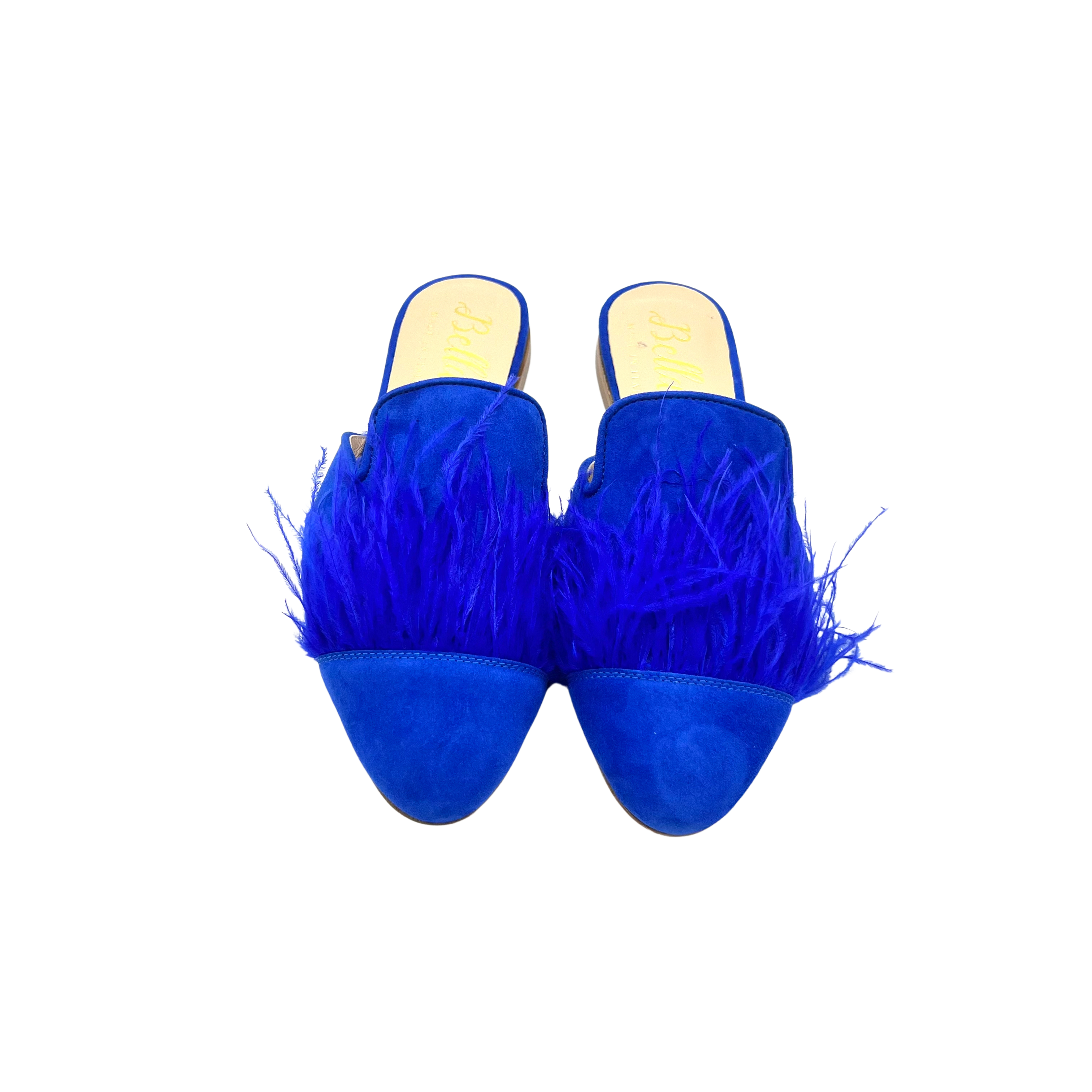 Obermaterial: 100% royal-blaues Wildleder mit Federn