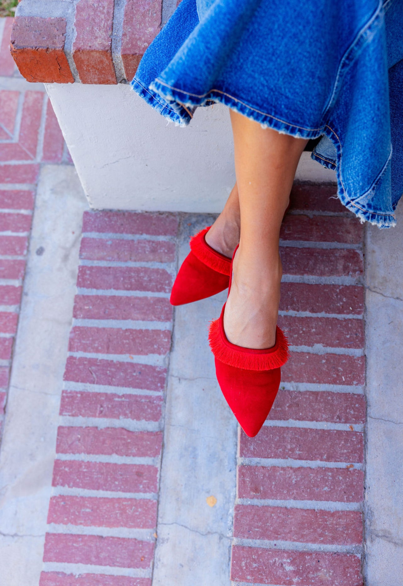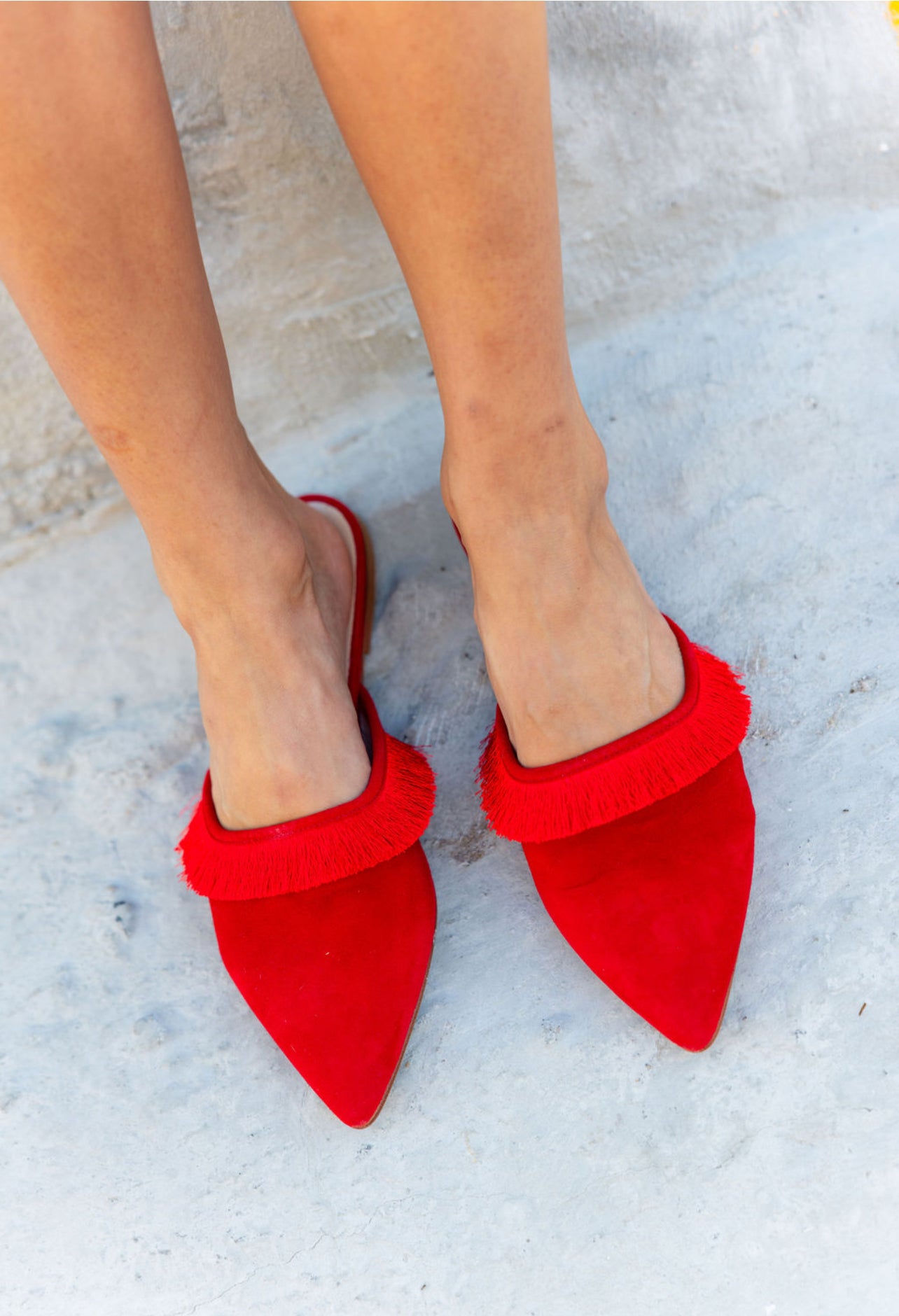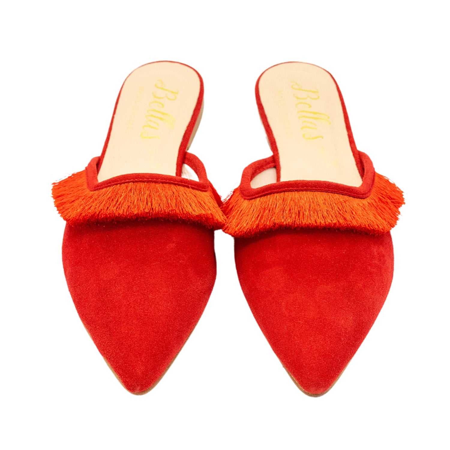 Obermaterial: 100% rotes Wildleder mit Fransen