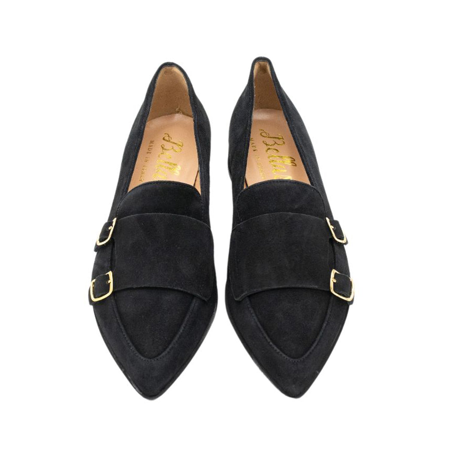 Obermaterial:Pointy aus schwarzem Wildleder mit zwei Schnallen