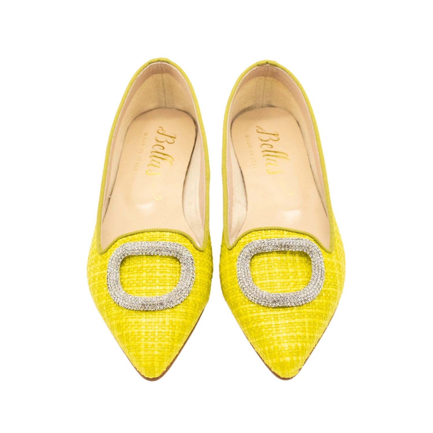 Obermaterial: lime-farbener Bast mit Glitzerschnalle