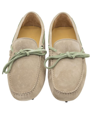 Obermaterial: 100% Wildleder in beige mit salbeifarbener Schleife