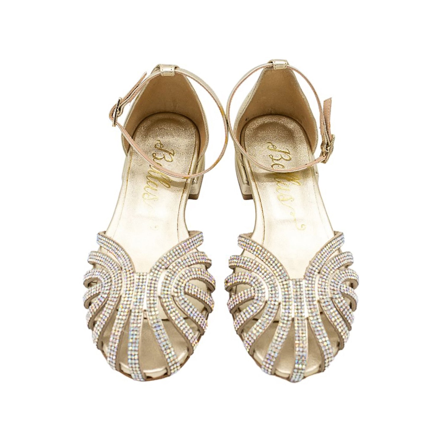 Obermaterial: 100% goldenes Glattleder mit Strasssteinen