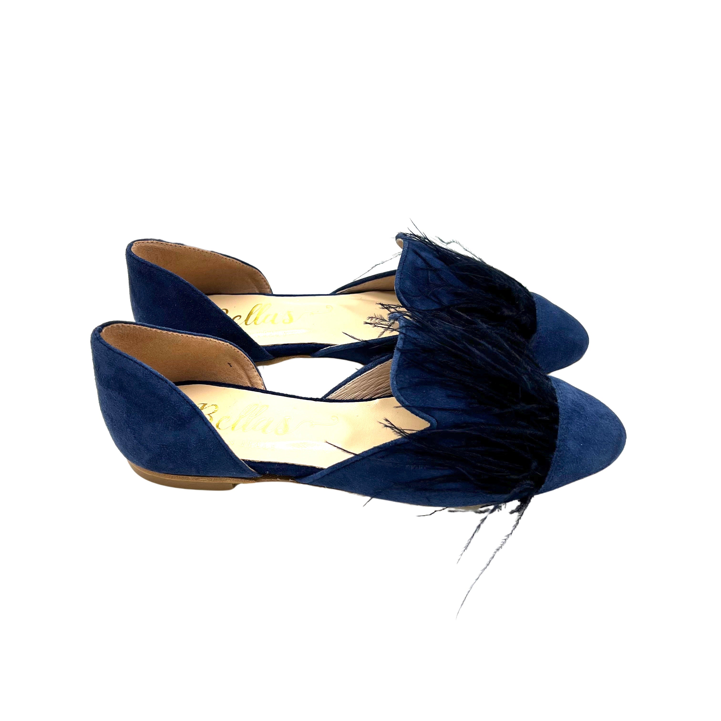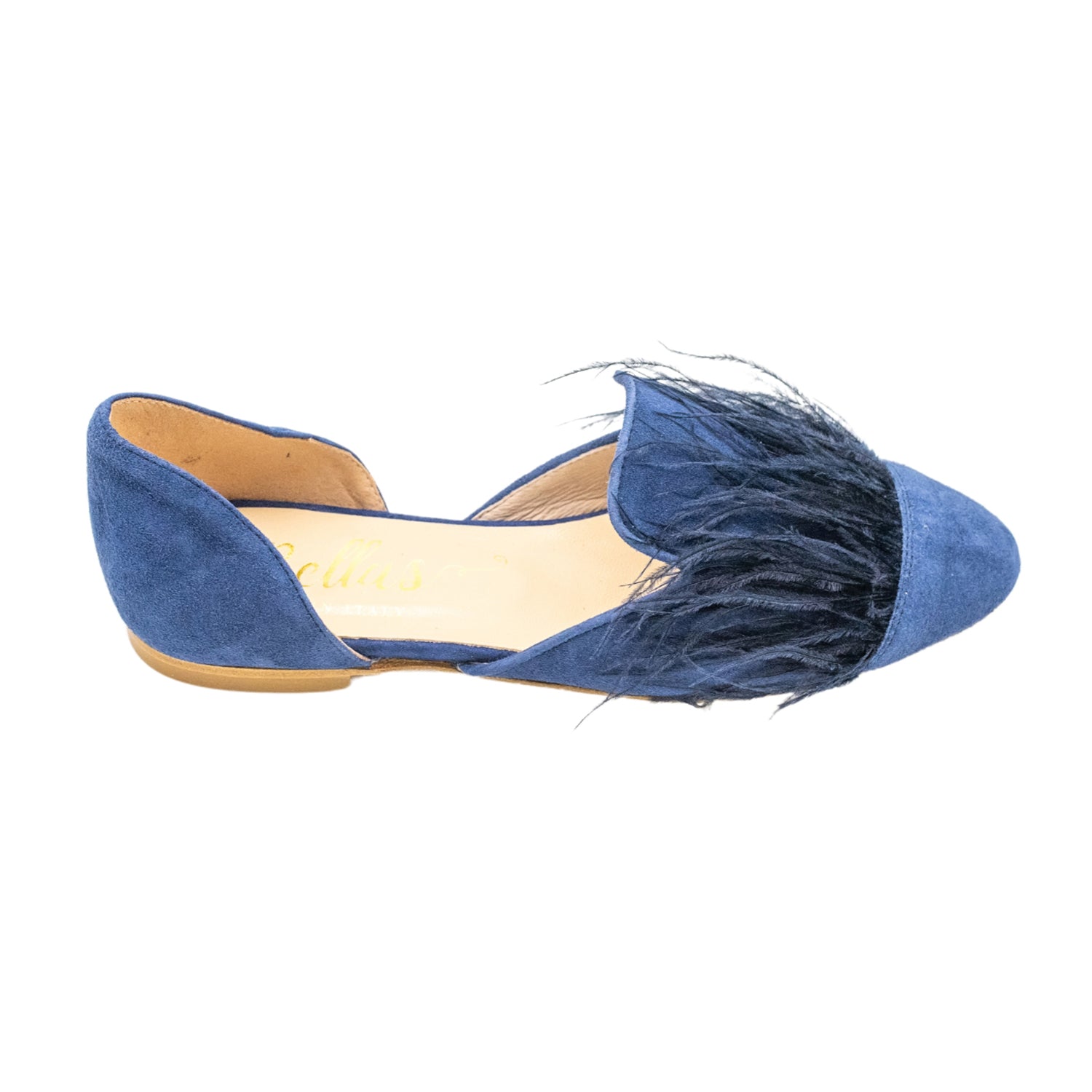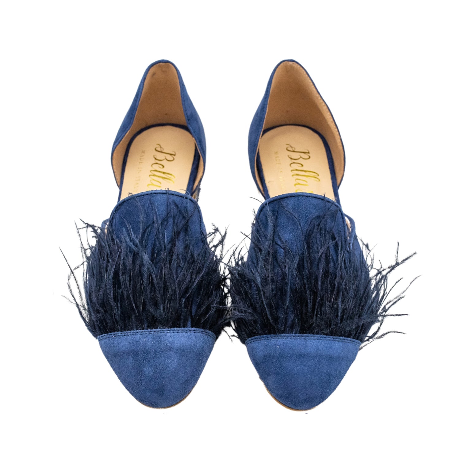 Obermaterial: 100% Dunkelblaues Wildleder mit Feder-Verzierung