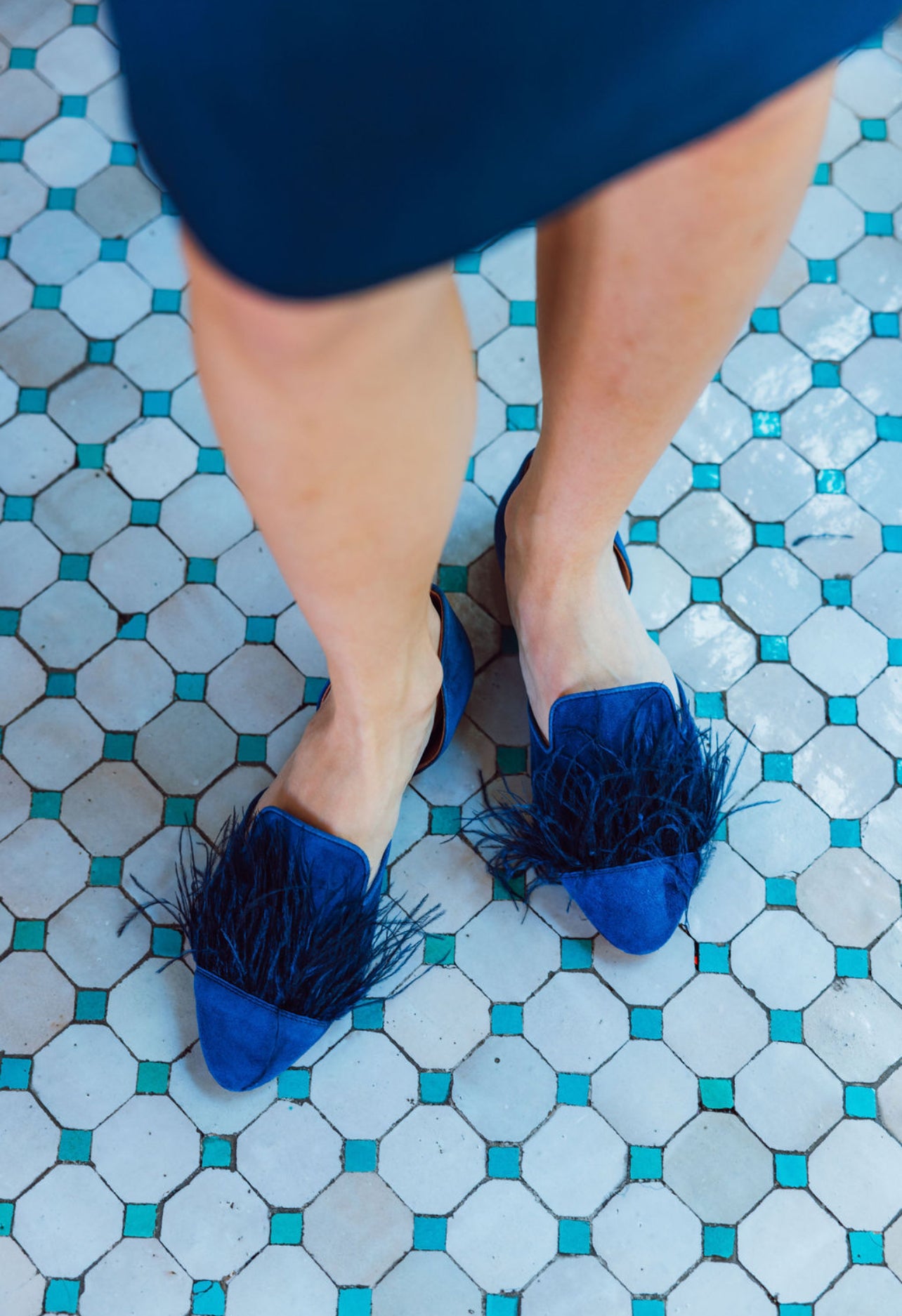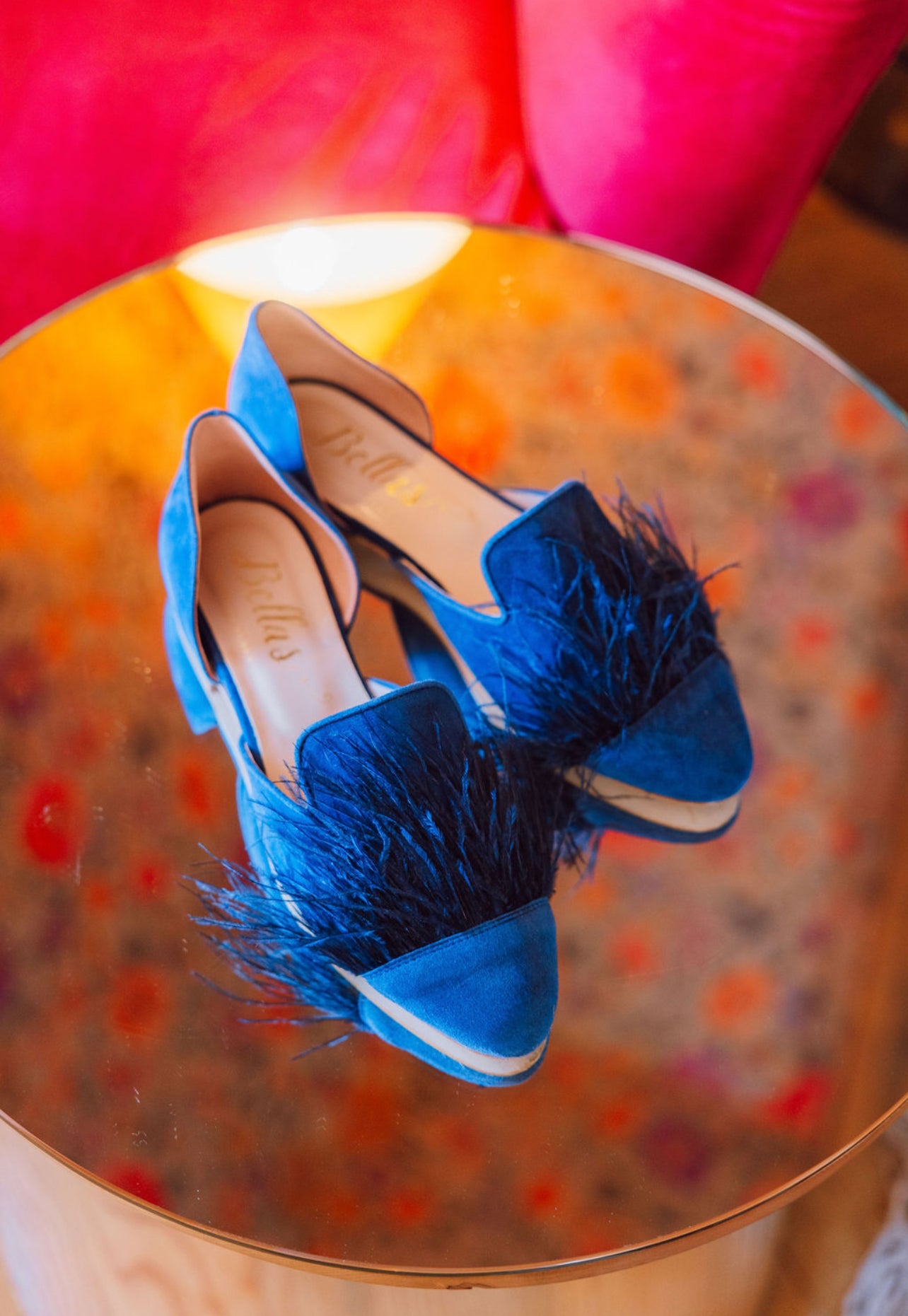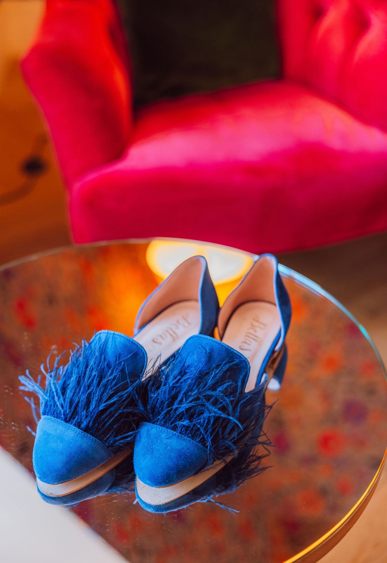 Obermaterial: 100% Dunkelblaues Wildleder mit Feder-Verzierung