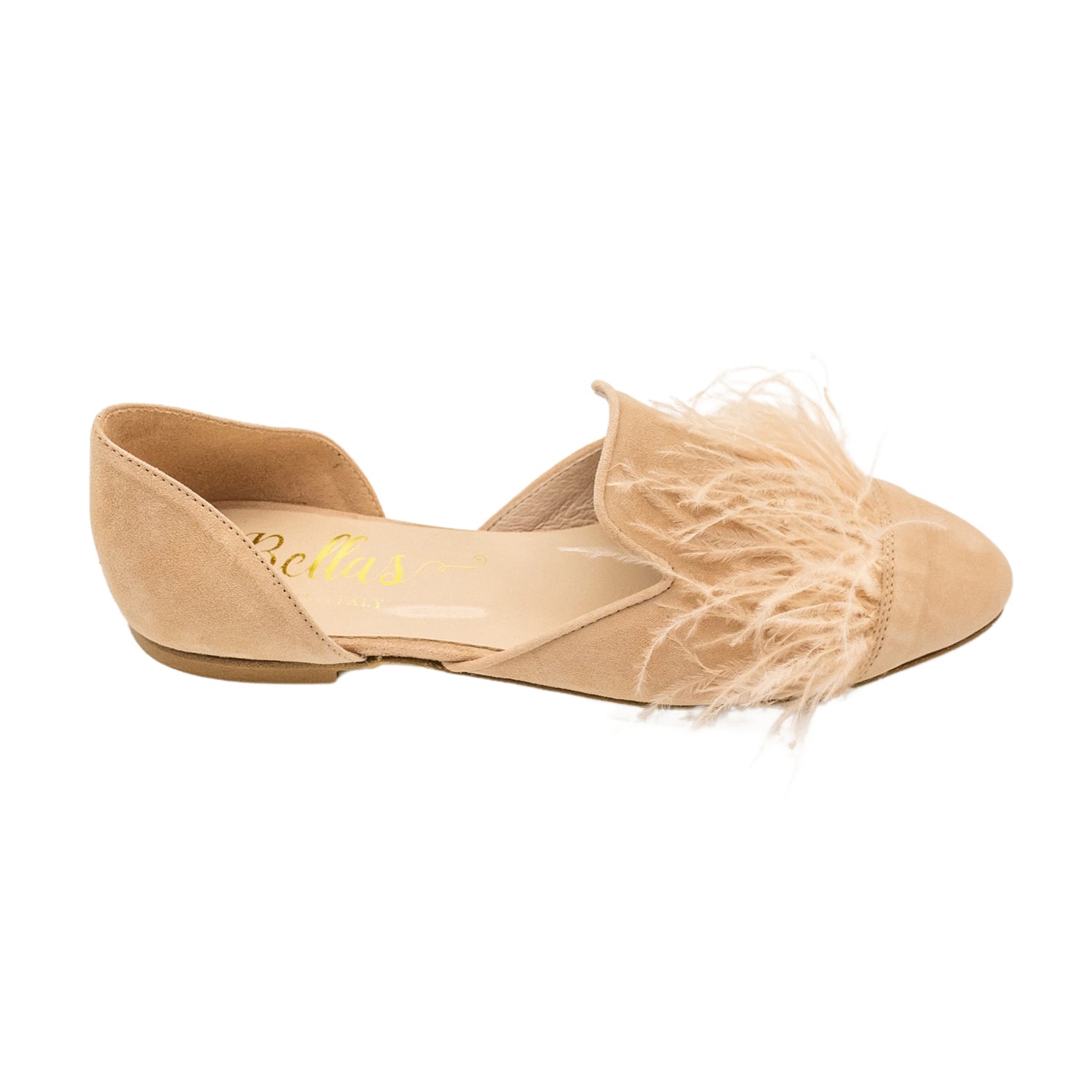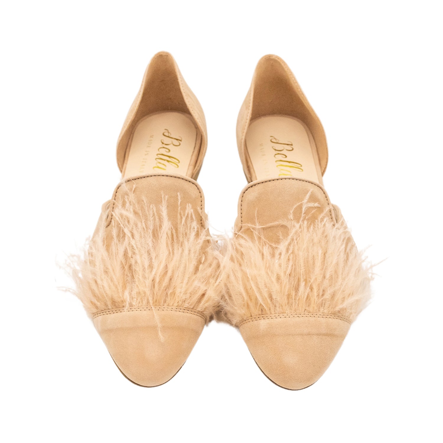 Obermaterial: 100% Beige/Hellrosa Wildleder mit Feder-Verzierung