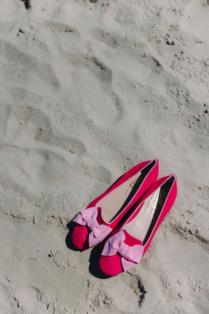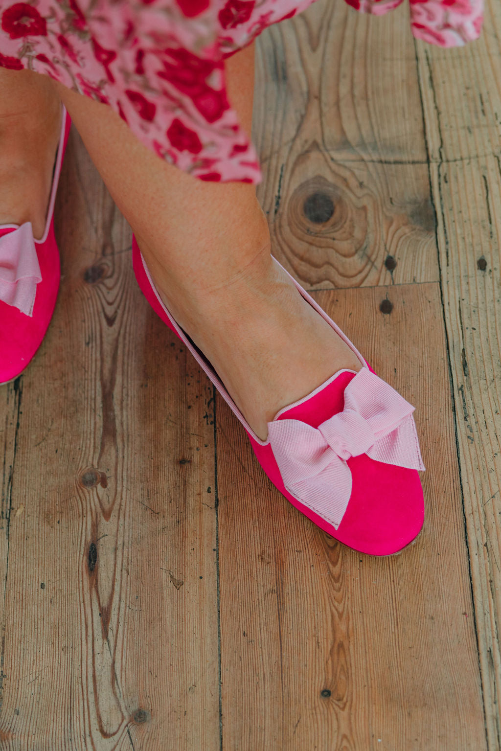Obermaterial: Wildleder in pink mit rosa Schleife